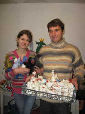 В одному чернігівському будинку живуть сотні маленьких дракончиків — символів нового 2012-го року! Половина — м’якенькі, а інша половина — глиняні. І всі вони — «хендмейд», ручної роботи тобто. Адже в цьому домі, крім дракончиків, мешкають ще й музи. Цілих дві: одна — Анни Кочановської, яка шиє кумедні м’які іграшки, а інша — гончара Андрія Піщура. Як уживаються під одним дахом два таланти?
