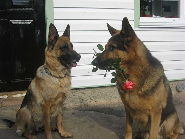 Хто з городнянців не милувався вихованцем Катерини Андрущенко — східноєвропейською вівчаркою Лордом, а через кілька років — уже Лордом і Гретою? Вони носять хазяйські кошики та сумки, поводяться напрочуд чемно й виважено, діти обліплюють їх, як бджоли мед, а собаки покірливо терплять ту дитячу любов. Поки Грета була маленькою, Лорд іще й водив свою майбутню «дружину» на повідку. Греті, мабуть, це верховенство не дуже подобалося, бо нині, коли виходять у місто, намагається сама брати його за нашийник. І Лорд не пручається — як жінка сказала, так і буде. Взагалі, в собачому роду є простий звичай — пси між собою можуть битися як завгодно жорстоко, але ніколи самець не битиметься зі своєю «половинкою». Це вона може, погарячкувавши, надавати йому ляпасів. «Дівчата» можуть битися між собою. Але ніколи благородна собача натура не дозволить псові якось зобидити самицю… Разом із Гретою Лорд виховує, миє своїх цуценят, бавиться з ними.