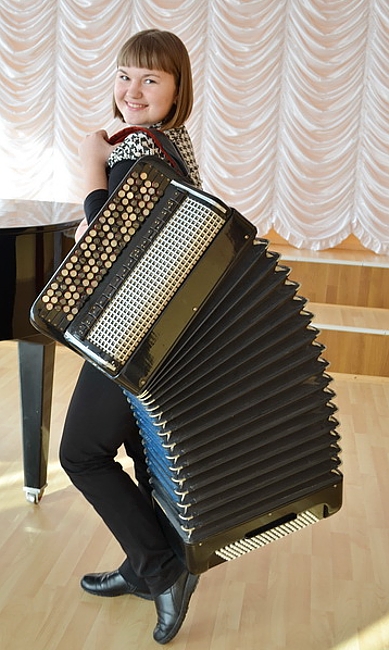 - Те, що Віка – дівчинка здібна і обдарована від природи, було видно одразу, - розповідає Олена Піддубна, викладач Вікторії по класу баяна. - Пам’ятаю її у першому класі – маленька, кругленька, весела! Ніколи не плакала і не ображалася. На неї навіть голос не хотілося підвищувати, бо змалку вона була самостійною, з величезним бажанням грати! Це, до того ж, інтелектуально розвинена дитина, яка усе схоплює на льоту.