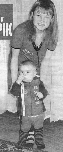 А коли після пологів виявилося, що в Аліни туберкульоз, ми дитину забрали до себе. Дениско — хлопчик гарний. І дуже ранній. У шість місяців впевнено сидів, до року пішов, десь у дев'ять чи десять місяців. А до того швидко повзав. Кмітливе дитя. Усе розуміє. Скажу: подай оте, принеси оте, — подає, несе! Любимо його всі, забавляємо. І тепер беремо до себе. А що вже молоко, інші продукти туди несемо, то й говорити не варто. Наша ж дитина.