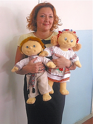 Недавно разработанная коллекция фабрики посвящена украинской тематике. Тут и забавные Маричка с Мыколкой, и гусак-украинец («Красавчик, да?» – сама любуется Наталия Николаевна), подушки с вышитыми казаками и подсолнухами... Есть и мальчик-футболист.