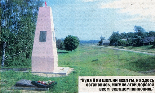 На одному з пагорбів стоїть невелика стела з червоною зіркою на маківці. Помітно, що нещодавно вона відремонтована. На табличках по боках стели зазначено 64 імені. В абсолютній більшості це рядові солдати і лише кілька сержантів. Серед звичних нам прізвищ чимало й характерних кавказьких.