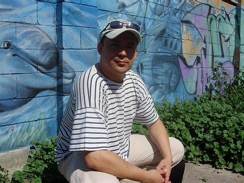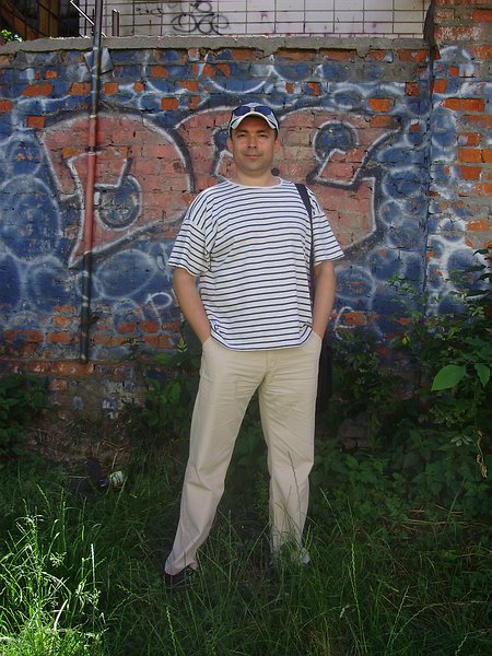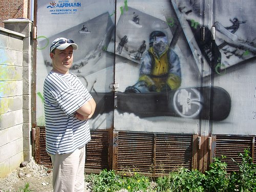 Олег Синельник, во дворе школы №1. Граффити на бексайде рисовал ученик Олега