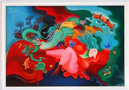Абсурдная Рекреационная Тантра, потому что картины создаются по странным законам невидимого мира, и чем больше человек вглядывается в изображение, тем больше он для себя там находит, а чем больше он находит, тем более он обновляется, как личность, настраивается на пробуждение новых ритмов пульсации мысли, что способствует его самосовершенствованию.