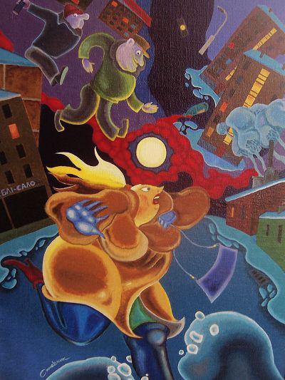 - Да, но я к этому пришел только после знакомства с моим учителем Николаем Небылицей, который был известным художником в городе. Он работал в газете «Деснянская правда», был художником-иллюстратором. Я собственно и продолжаю его дело, работаю в газете «Семь дней». По большому счету я могу сказать, что сейчас в городе у меня нет конкурентов в жанре газетной иллюстрации. Потому что большинство редакторов предпочитают брать картинки из Интернета, а не платить живому художнику. Лично я рисовать какие-то пейзажи и натюрморты не хочу и не буду. Мне это совсем не интересно. А вот создавать то, чего никогда не было, свой мир, гораздо увлекательнее.
