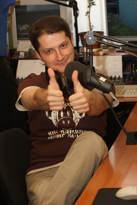 - Раньше конечно настраивался. Может быть еще и потому, что времени больше было. Ехал в маршрутке, и этих 15-ти минут вполне хватало на, чтобы продумать, что сказать, с какой песни начать. Перед первым эфиром волновался ужасно! Жена даже заметила, что голос в эфире дрожал. Но потом я привык. Какого то секрета настройки нет. Потому что иногда время поджимает настолько, что успеваю только одеть наушники, включить микрофон, вывести ползунок и сказать: «Добрый день. В эфире радиостанция Kiss fm. Меня зовут Андрей Соколов. Всем хорошего настроения!»
