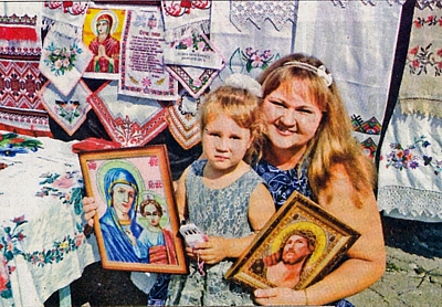 Тетяна Заклевська з донькою та вишитими іконами
