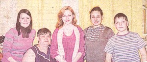 Слева направо: волонтер Альфия Савчук, Зоя Алексеевна Черепанова, Юлия Подлесная, волонтер Алена Миненок и Данила Шушев