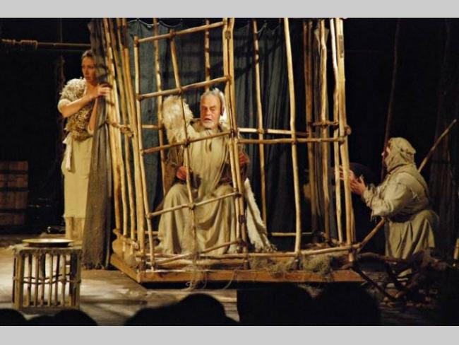 Сцена из спектакля «Очень старый сеньор с огромными крыльями»