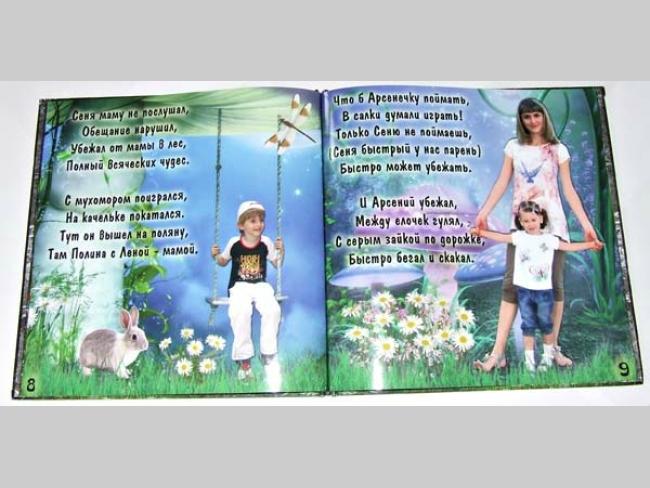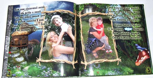 Когда выписались из больницы, начала заниматься оформлением. Фотографировала «персонажей» в нужном для моей задумки ракурсе, подбирала фон, потом сверстала книгу и заказала в одном из издательств (в единственном экземпляре). Когда к Новому году я подарила ее Сене, удивлению и радости его не было предела: «Представляете, там не только рассказ, но и картинки тоже обо мне!». Он с ней не расставался, показывал друзьям во дворе, носил в садик. Меня потом многие просили и для их детей такие книжечки сделать, и не бесплатно, но я не согласилась. Оформить книгу могут многие, но написать историю о ребенке, не зная близко его и семью, непросто, и не думаю, что выйдет интересно. Ведь все хорошее получается, только когда работаешь с душой.