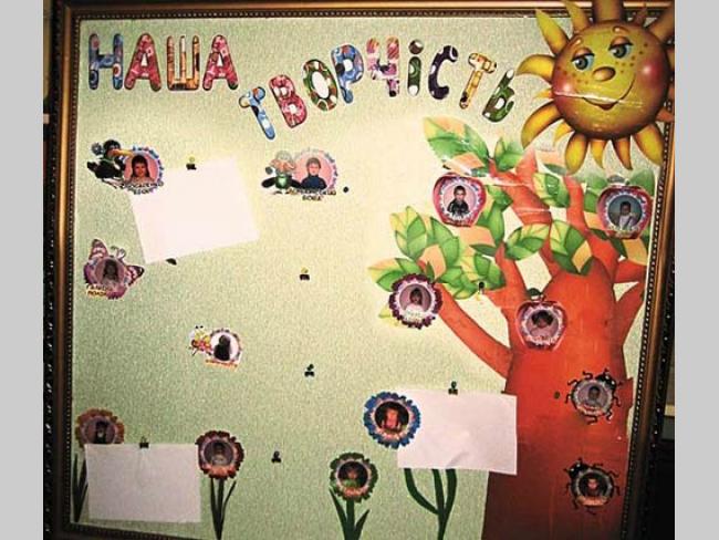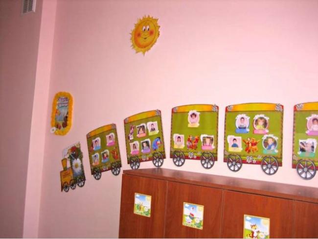 – Наш садик находится на Масанах, прямо в лесу, даже называется «Лісова казка», – рассказывает Елена. – Недавно там открыли новые группы: хороший ремонт, новая мебель, но как-то пусто. Стены однотонные, шкафчики безликие… Родители купили игрушки, раздаточные материалы, ковер и решили как-то оживить интерьер. Сначала я сделала наклейки на шкафчики, кроватки и над вешалками для полотенец. У каждого ребенка – свой «мультяшный» персонаж. Потом оформила стену, где висит меню, распорядок дня, важная информация. На другой стене – паровоз именинников. В каждом вагоне по пять ребят. В первом – те, кто родился в начале года, и так все по очереди. Сейчас оформляю стенд, где можно будет разместить детские работы. Я придумала его в виде картинки, на которой изображено солнышко, тучки, дерево с яблоками, цветы, птички, жучки, бабочки. На них наклею фотографии детей, а рядом на специальных прищепках можно подвешивать их рисунки, аппликации...