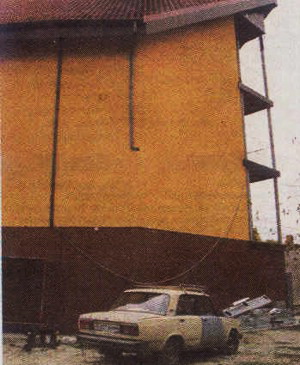 Перекрытия в доме будущего деревянные, из клееного бруса. По дереву положен пенопласт. На него залито шесть сантиметров бетона, а поверх постелен деревянный пол. Конструкция не соприкасается со стенами и на нижнем этаже шаги почти не слышны. Специальные, с повышенным тепловым сопротивлением окна и двери делала фирма Козубова — получились не хуже, чем у западных фирм. Стеклопаке- ты с очень широкой рамкой, стеклом с теплоотражающим покрытием и заполнением инертным газом изготовила одна из черниговских фирм.