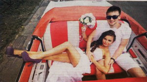 Дарина и Сергей Рыженко в свадебном кабриолете