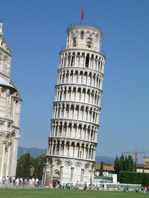 Пизанская колокольная башня является частью ансамбля городского собора Санта-Мария Ассунта в городе Пиза. Она младше Колизея, но интерес иностранных туристов к ней не меньше. Башня построена в 1360 году. Сразу же после «сдачи» сооружение получило прозвище Падающая башня и всемирную популярность.