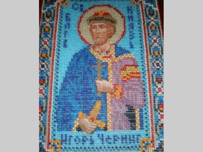 Ніжна мелодія вальсу наповнює затишний дім: Наталія з донькою грають на фортепіано в чотири руки (до слова, обидві ще й чудово співають, свого часу Наталія Губар на «відмінно» закінчила Чернігівську музичну школу №1, де нині навчається й Катруся). Тим часом не можу відірвати зачарованого погляду від ікон, вимережаних бісером. Ігор Чернігівський, Володимир Великий, Семистрільна, Божа Матір із немовлям, кілька образів великомучениці Катерини (вишитих у подарунок матері й донечці), Наталія… Для найрідніших і найдорожчих людей майстриня вимережила ікони – обереги – з любов’ю й натхненням, усіма кольорами веселки.