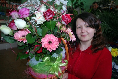 Юлія Яхно з Березни демонструє дивовижний букет, створений у менському салоні «Кипарис». Це диво вартістю 800 гривень замовила її подруга Оксана Павленко, щоб привітати з днем народження свою матусю Олександру Іванівну