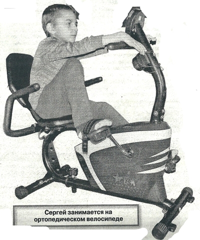 Спустя некоторое время Сергей стал понемногу ходить, но ему было очень трудно, постоянно болели колени. С прошлого года он занимается на специальном ортопедическом велосипеде, на который дал деньги народный депутат Игорь Рыбаков.