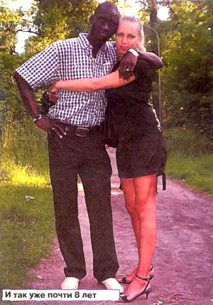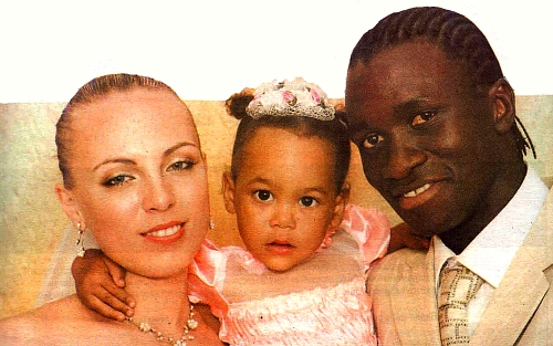 25-летний Мамади Сангаре родом из Гвинеи. В январе 2001 года по приглашению киевского футбольного клуба «ЦСКА» приехал на Украину. И впервые увидел зиму. Два его соотечественника-футболиста не оценили красоты украинской зимы и, не подписав контракт, вскоре вернулись домой. Мамади же остался. Тем более что в Украине его держал не только контракт. Буквально через несколько дней после приезда он с товарищами по команде зашел поужинать в кафе, где отдыхала с подругами киевлянка Елена. Она тогда была вратарем гандбольной команды «Нафкомакадемия» (Ирпень). Симпатичная блондинка и горячий гвинеец понравились друг другу и с того времени не расставались. Семью создавали по-современному: три года встречались, потом родили ребенка, а через некоторое время расписались. Вот и вышло, что на свадьбе у Сангаре самым дорогим гостем была их дочь Николь - Мириам.