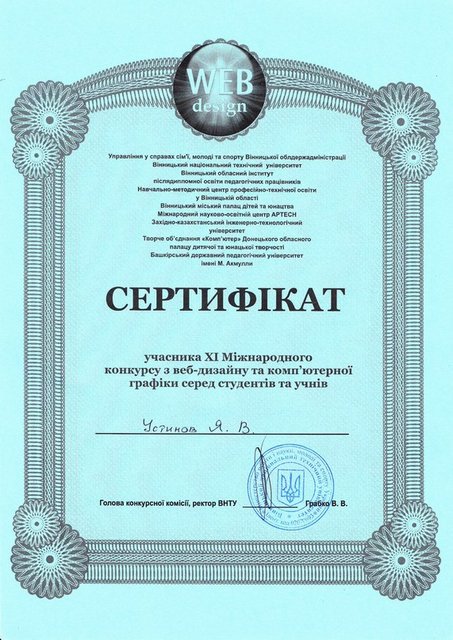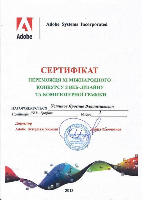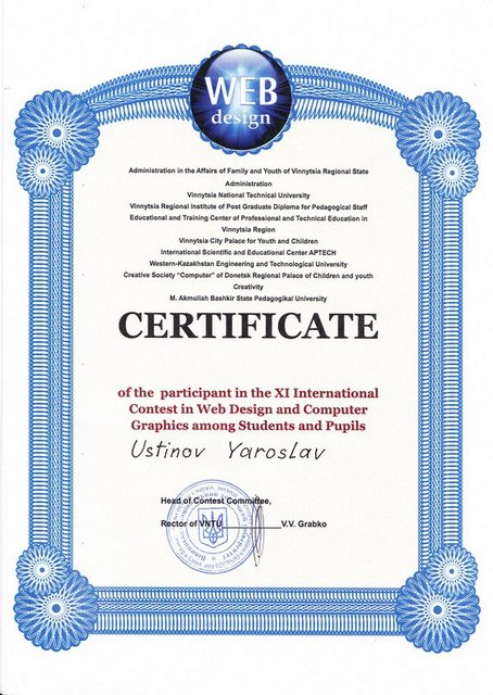 Черниговчанин Ярослав Устинов занял 1-е место на международном открытом конкурсе по Web-дизайну среди школьников и студентов