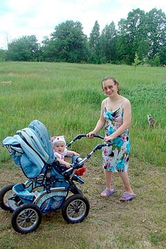 — Вроде бы недавно из роддома забирали, а дочке уже восемь месяцев исполнилось, — улыбается Таня. — Настенька не дитя, а подарок — спокойная, послушная. Я хотела научиться ходить одновременно с дочкой. А получилось, что мама Настю обогнала. Поначалу я приловчилась передвигаться по дому, держась за стены и мебель. Правда, ходить по улице без костылей побаивалась. Но бездорожье заставило. Попробуй-ка дойти до магазина с коляской и на костылях!