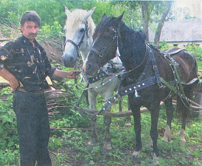 — Всього гектарів 12-13, — додає Михайло. — Як на брата, то гектарів по чотири є. Всього нас троє: батько, 48-річний Григорій Михайлович, я і брат. Обробляємо разом, хоча живемо різними сім'ями. Дома є кінські гребки для сіна. Косарка. Плуги. Все роблять коні. Обгортають картоплю — коні. Садимо під коня, так само і копаємо.