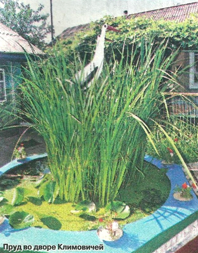 — Не поверите, наверное, но пруд мы с мужем смастерили за один день, — продолжает рассказывать Анна Ивановна. — Подвели к нему трубы, набрали воды. Вышел он у нас где-то два на два метра. Авдеевич наловил вьюнов, карасей. В пруд положили большие камни, чтобы рыбе было куда прятаться. Посреди него поставили большую четырехведерную кастрюлю. В нее насыпали землю и посадили аир.