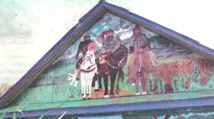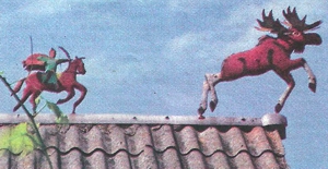 Посмотрели Климовичи, что птице одной стоять скучно. И единодушно решили сделать ей пару. Теперь из кустов аира тянут длинные шеи пышногрудые аисты. Сестра Анны Ивановны Нина, когда гостила в Араповичах, добавила этому двору нотку сказочности. Теперь на стенах летней кухни — березовая роща, на стенах сарая — пастбище с оленями. А сверху на крыше скачут на конях три богатыря. Держат Климовичи большое хозяйство: свиней, кур, гусей, уток. Но все это — в отдельном дворе. А тут изобилуют яркие цветы, квакают лягушки, на воротах красуются петухи и зайцы.