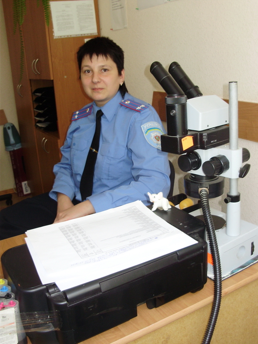 Сама я з Донбасу, в 1995-му році закінчила Донецьке училище міліції за спеціальністю експерта. А на роботу зразу потрапила сюди, до Чернігова. Працювати у міліції мені хотілося відразу. Знайомі порадили йти вчитися на експерта. Так і займаюся цим уже майже 21 рік. У криміналістиці всього існує сім експертиз: дактилоскопія, холодна зброя, технічна експертиза документів і т.д. Спочатку експерт мав володіти всіма їх видами, і я проводила будь-які дослідження. Пізніше, коли було прийнято рішення про те, що кожному експерту краще займатися певною спеціалізацією і поглиблювати свою кваліфікацію в ній, я вибрала почерк. Він завжди був моїм улюбленим, я захоплювалася психологією, читала відповідну літературу.
