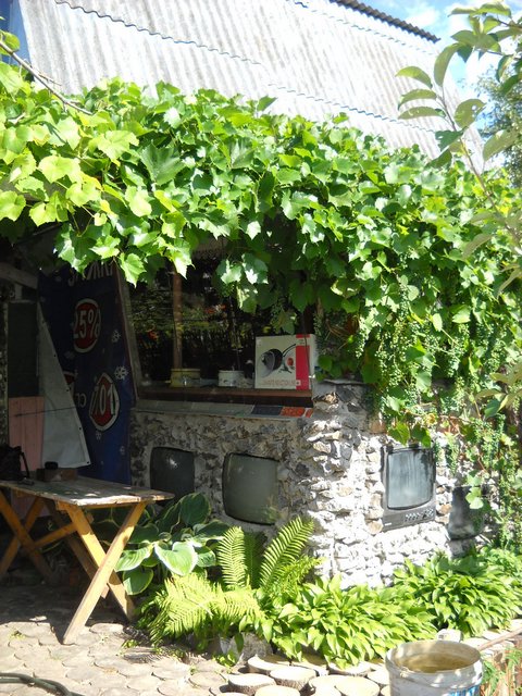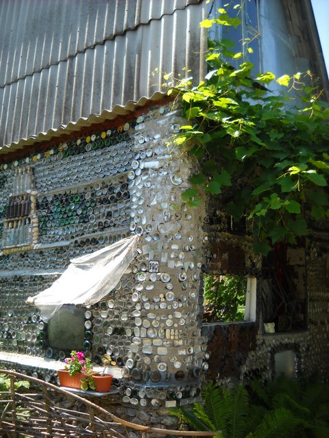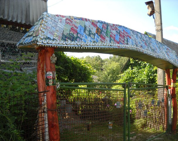 В скором будущем он планирует еще и сарайчик соорудить – тоже из бутылок! Материал уже почти собран. А буквально за несколько дней до моего прихода смастерил «браму» - деревянные ворота с крышей, оббитой фольгой от пивных бутылок – чтобы не портилась от влаги. «Все, что я задумал, то и делаю. Ничего сложного в этом нет, нужны только умелые руки и немного соображения», – делится своими секретами умелец. Похоже, что обустройство дачи – его самое большое увлечение.