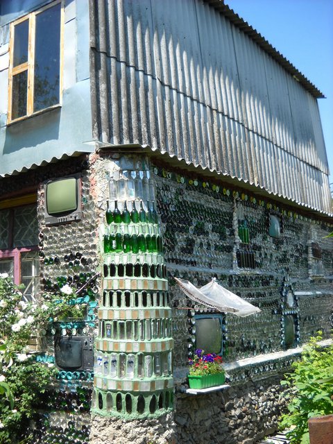 Долгие годы мой собеседник работал водителем-дальнобойщиком в городском автопарке, возил группы туристов, побывал в Польше, Румынии, Чехословакии, Германии, Голландии, Греции. Подобный домик из бутылок он увидел в Румынии, только тот был построен из бутылок из-под шампанского, тогда-то и появилась мысль, что такой же можно возвести и под Черниговом.
