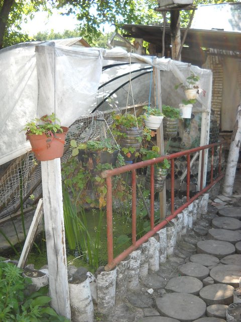 Знаете, в гостях у Николая Евтуховича стоит побывать и затем, чтобы увидеть, как по-максимуму использовать небольшой дачный участок и для отдыха, и для получения «дивидендов». Только представьте, на участке размером всего 4,5 сотки есть дом, мангал с коптильней (в виде печки, где можно и шашлык пожарить, и рыбку закоптить), летний душ (избушка на курьих ножках) и даже… мини-пруд с карасями! Здесь плодоносят малина, клубника, земляника, перец, помидоры, огурцы. Жена Наталия любит цветы, разводит розы, клумбы отделены симпатичным плетнем двух видов, который хозяин тоже смастерил своими руками.