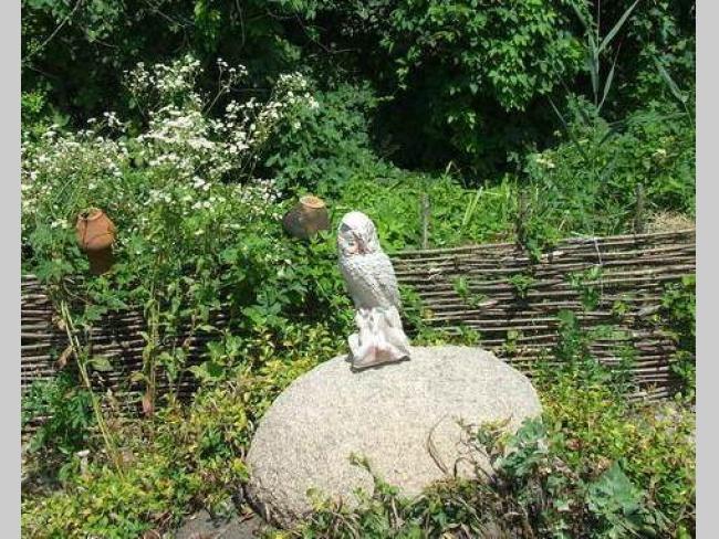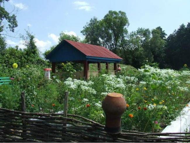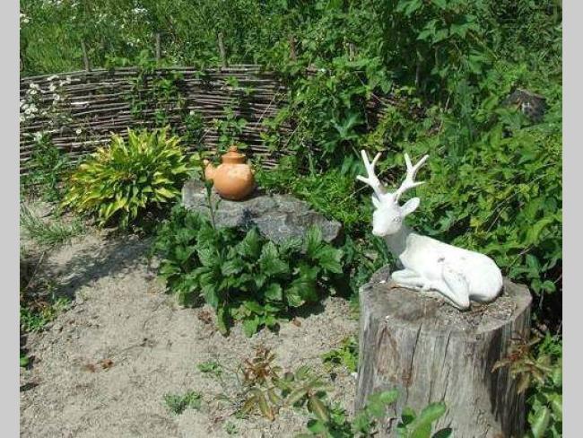 – Но это еще не все. Хочу, чтобы муж сделал мост от дороги до клумб, – делится планами Лидия Бражник. – Сын приносит домой разные камни, которые мы выкладываем по своему «сельскому фэн-шуй». Обгородили беседку плетеным забором из лозы, а на колышки повесили керамические кувшины. Скоро установим качели. Купили фигурки зверей и птиц и разместили по всей территории. Интересный был случай, когда возле пруда установили плетеное гнездо с двумя декоративными аистами. К ним прилетел настоящий и начал выживать своих, как он думал, собратьев, бил их. Так продолжалось два дня, а потом уселся между ними, посидел до вечера и улетел.