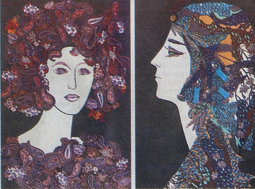 - Картина «Ночные ветры» -это философия восторга перед ночью, космическим пространством. Эту работу долго совершенствовала. Как только нарисовала профиль, решила, что это совсем не то, что нужно. А потом поняла, что голову нужно облачить в платок, который создавала очень долго из лоскутков и былинок. Хотя две картины - мавок и сказочника из «Лесной песни» Леси Украинки сделала быстро. Мне эти работы очень нравятся. Благодаря антуражу они заиграли, - продолжает рассказ мастерица. - Я работаю с разными тканями, особенно люблю шелка. Есть картины из рубашечной ткани, где много орнаментов и красок. Использовала также гобеленовые ткани от Версаче.