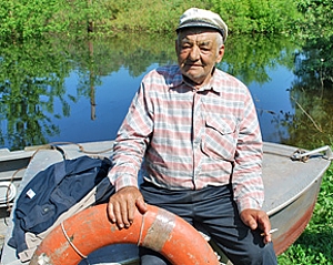 На човна присів перекурити літній, але ще досить міцний чоловік у картузі, схожому на морський. Підхожу, розговорилися.