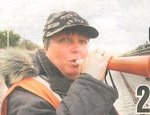 Вона дивиться, щоб на рейках не було ремонтників, коли проходить поїзд. У такому разі Валентина Вікторівна дмухає у свій ріжок. Звук виходить гучний і противний, немов у вувузели — дудки південноафриканських футбольних фанатів.