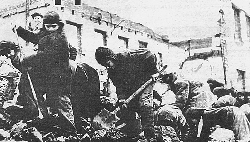 Расчистка завалов г. Прилуки, 1944 год. Этот снимок типичен для того времени: от Бреста до Сталинграда, от Ленинграда и до Севастополя дети и взрослые поднимали свою страну из руин