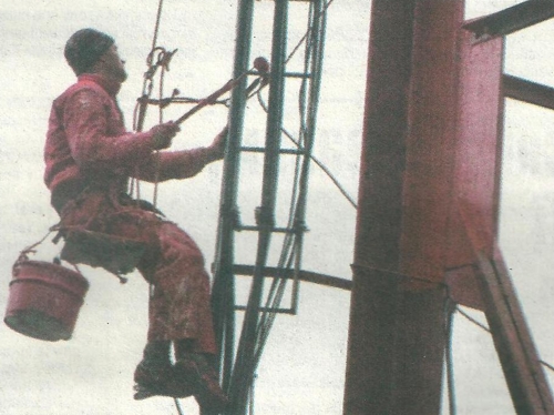 До речі, як стало мені відомо, одночасно в Україні відбувається відновлення лакофарбового покриття ретрансляторів у кількох областях. Що ж до фарбування корюківської вежі, то Концерн РРТ (радіомовлення, радіозв’язку та телебачення), а саме йому вона належить, для виконання робіт найняв спеціалізовану підрядну організацію, яка надає послуги виробничого альпінізму. А та, в свою чергу, відрядила до нашого міста групу «екстремалів». До неї увійшли майстри спорту з альпінізму 31-річний Анатолій Скобчак, 30-річний Володимир Стуліков та 20- річний Владислав Орел, котрий прагне нічим не поступатися старшим колегам. За плечима ж досвідчених - багаторічний досвід висотних робіт. Крім того, Анатолій та Володимир - двічі брали участь у підкоренні Ельбрусу!