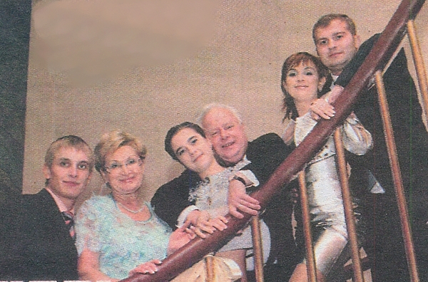 Валентин Мельничук и его семья. Слева направо: сын Сергей, жена Людмила Сергеевна, внучка Алена, Валентин Васильевич, дочка Ольга, зять Алексей