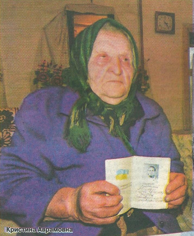 — Забирали не только то, что люди пытались спрятать, — до сих пор с болью говорит Кристина Аврамовна, — но даже то, что в печи варилось. Очень трудно тогда жилось. Ни крапивы было не найти, ни лебеды — все люди съели. Листья липы рвали и варили, вместо борща ели. Гїлод был такой, что на ходу люди умирали. В одном дворе жило десять человек, из которых восемь умерло в голодомор. Только успели одного похоронить, а уже другой умирал. Поэтому разрывали могилу и, завернув покойника в какую-то дерюгу, хоронили рядом. Так восемь человек в одной могиле и схоронили.
