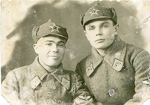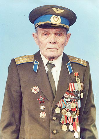 Із двох фотографій, що зроблені в різні часи, на нас дивиться одна й та ж людина. На одній молодий курсант — льотчик у будьонівці, а на другій, уже нашого періоду, ветеран — льотчик із погонами полковника, з двома орденами Червоного прапора, Червоної Зірки, Вітчизняної війни, багатьма медалями і відзнаками на військовому кітелі.