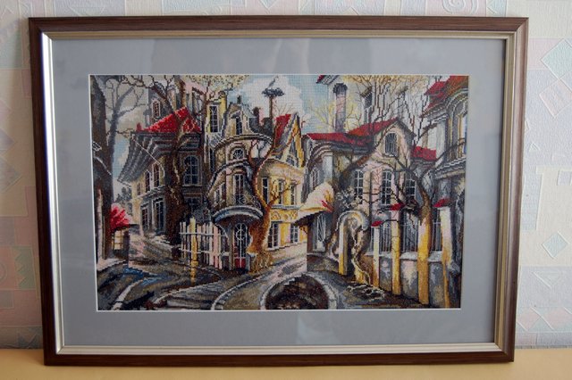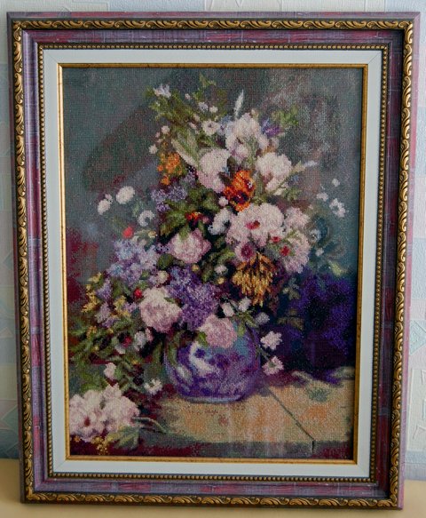 Вышивок у меня много. Часть из них висит в рамках на стенах, часть неоформленных. Много вышивок я уже подарила своим друзьям. Занимаюсь этим около трех лет. Начала со скуки, потом втянулась. Времени катастрофически не хватает, чтобы просто сидеть и вышивать, поэтому совмещаю вышивку и просмотр фильмов или другие занятия, не требующие предельной концентрации внимания. Вышиваю только крестиком, также использую при необходимости технику Backstitch. Вышиваю в основном только большие картины, есть несколько по мотивам картин Ренуара и Шишкина. Это не то что бы хобби, просто способ занять руки и одновременно сделать красивую вещь.