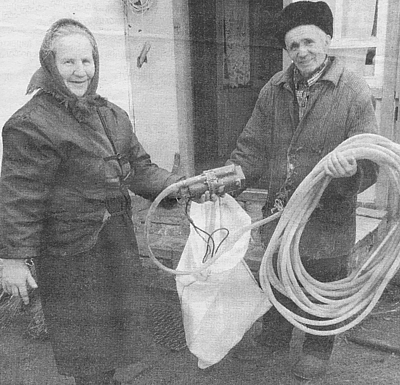 — Прошлий год вище мене води у погребі було, — розповідає Петро Осипенко. — Насосом одкачаєм, у резинових чоботях носимо картошку в хату. У чоботи біжить вода — знов одкачуєм. Тонн дві картошки винесли.