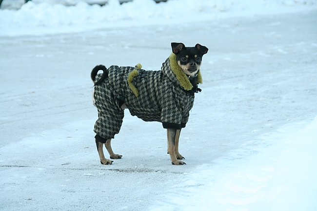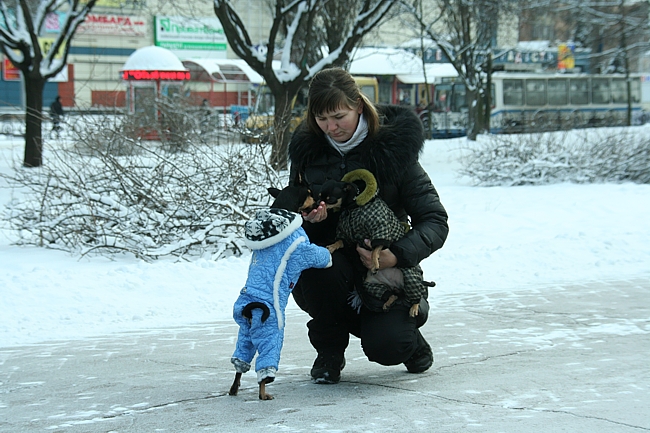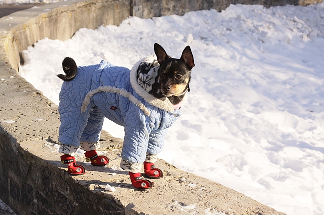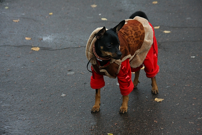 В собачьем гардеробе есть спортивные костюмы, джинсовый комбинезон, свитера, штанишки на подтяжках, футболки, дубленки. Среди нарядов платьиц нет, ведь одежда, прежде всего, должна защищать животное от холода.