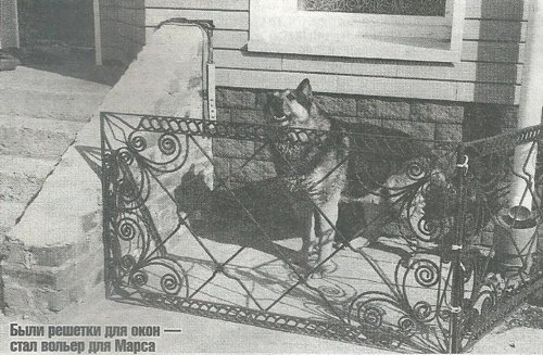 — Это я решетки на окна сделал, — улыбается Александр Сердюк. — Жене и дочери не понравились, сказали, что очень густые. Теперь думаю, куда их приспособить. Решетки на окна надо придумывать другие. Зато Марса теперь есть куда закрыть, когда гости приходят.