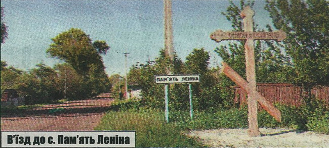 Чи пам’ятаєте Ви Леніна так, як пам’ятають його у селі Пам’ять Леніна Менського району? З кінця 1920-х років пам’ятають. Тоді 8 сімей з сусіднього села Куковичі оселилися в урочищі Барахівіцина і заснували колгосп, а своє поселення назвали Пам’ять Леніна. Щоправда, пам’ятаючи вождя пролетаріату, нині мабуть «забули» про його антихристиянську політику. Сьогодні біля таблички з назвою села стоїть великий хрест.