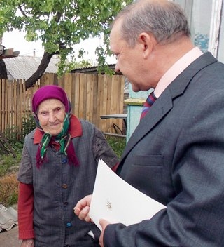 Завітали на сторіччя до Ірини Миколаївни і виконуючий обов’язки голови райдержадміністрації Володимир Василенко, який, окрім квітів і подарунка, вручив іменинниці вітання голови облдержадміністрації Володимира Івашка.