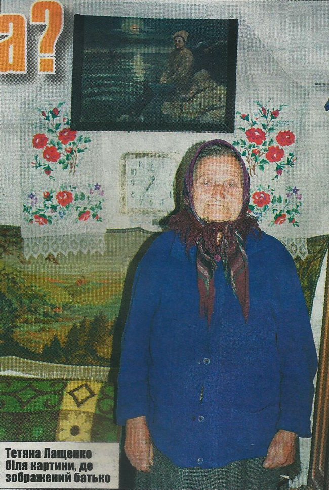 Нині ялини майже втричі вищі за хату. її збудував ще батько. За багато років (господині 9 травня виповнилося 85) будівля ніби поменшала - зіщулилась, осіла. Бабуся живе в ній сама. Батько загинув на фронті. Як пам’ять про нього - на стіні намальована на фанері картина.