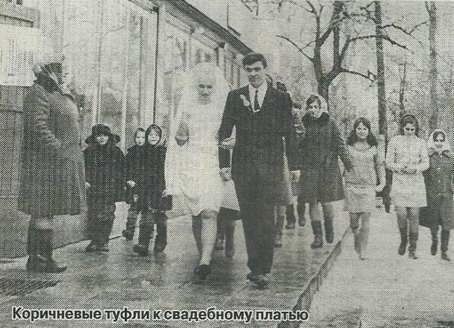 Вернулся с ними перед самой свадьбой. Туфли привез красивые, но они были немного велики. Уже на роспись пора, а я босиком. Пришлось обуть старые — коричневые. В тот момент было не до суеверий. Да и не знала я, что, если на невесте есть что-то такого цвета, в будущем будет делить с мужем имущество, нажитое вместе.