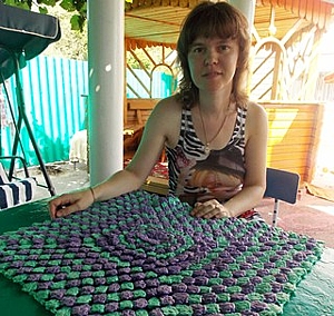 Плетені диванні подушечки з казковими квітами і веселими звірятами – витвори рук Вікторії. А ще вона виготовляє м’які, міцні і зручні килимки для ванної кімнати з чистих пакетів для сміття (на знімку). Гачком скручує їх, уміючи, ще й узор підбирає.