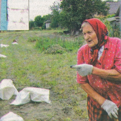 - Як, - розводить руками місцева бабуся, - на тисячу гривень пенсії мені і город виорати, і засіяти, й обмолотити, та ще й дітям щось дати? Працюєш-працюєш, а плід твоєї праці, як ось картопля, копійки коштує. Чому люди, які на своїх плечах піднімали колгосп, жінки, які собою орали, не отримали нічого від його розвалу? Колгосп розібрали. Та хоча б колгоспники розібрали, а то ж невідомо хто: привезли з міста крани, забрали все, що можна було забрати, і зникли.